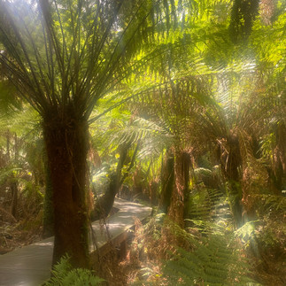 Next stop was a visit to a temperate rain forest area with very cool flora including lots of the prehistoric looking fern trees and the enormous Mountain Ash, a type of Eucalyptus tree that is second only to Redwoods in height. The trip had been advertised as "close encounters" with Koalas. However, you can see from the pic below we did see them, (kinda), but it turns out they're almost always asleep and high up in the tree - a little bit of a letdown to be honest, oh well.