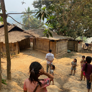 We made a stop at a very small Hmong village. It looked like we were just pulling up to a beach when a hoard of small children (about 20 of them) started running down the steep hill that sits just below their little community. They immediately came to the boat and were eager for us to let them guide us to their village. TBH they were all trying to sell us crafted bracelets, but they also seemed curious about us and were VERY cute! The kids jostled for position to hold our hands and would not let go. They also giggled at petting Steve's arm hair and loved touching Lauren's head hair.