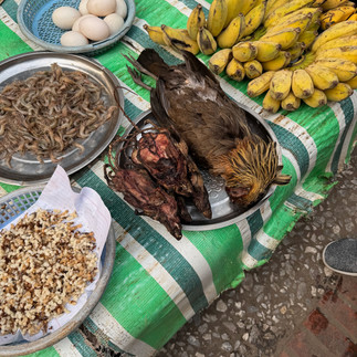 Our next stop was off to the local market in Luang Prabang. As is typical for markets in Asia it's a hectic mix of vendors and buyers and a dizzying array of produce, some familiar, others not and some downright bizarre! As you can see from the pics below, we saw the usual colorful variety of vegetables, an assortment of peppers, lots of rice and many cooked meals prepared in front of your eyes on charcoal grills. There was a lot of grilled meats including chicken, catfish and tilapia as well as pork and water buffalo. The "build your own soup" stall was fascinating.