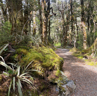 We experienced a lovely hike on a wooded and mossy path that crossed over streams with waterfalls. We were amazed at how clear the water was; it looked like it had just come out of the faucet! The natural vegetation is varied and beautiful which looked like it could be manicured landscape at a high-end resort. At one point a curious South Island Robin chirped around us and even landed on Sue's head twice! Sue took us to several other stops that offered some history of the area and additional stunning views. We learned that in the 1860s Arthur Dobson and his brothers (with much help from the native Māori people) carved the original road through the area which crossed the southern Alps. Once the road was carved, Arthur's pass became a popular vacation destination for the early settlers and there were photos on some of the plaques showing some of the early visitors.